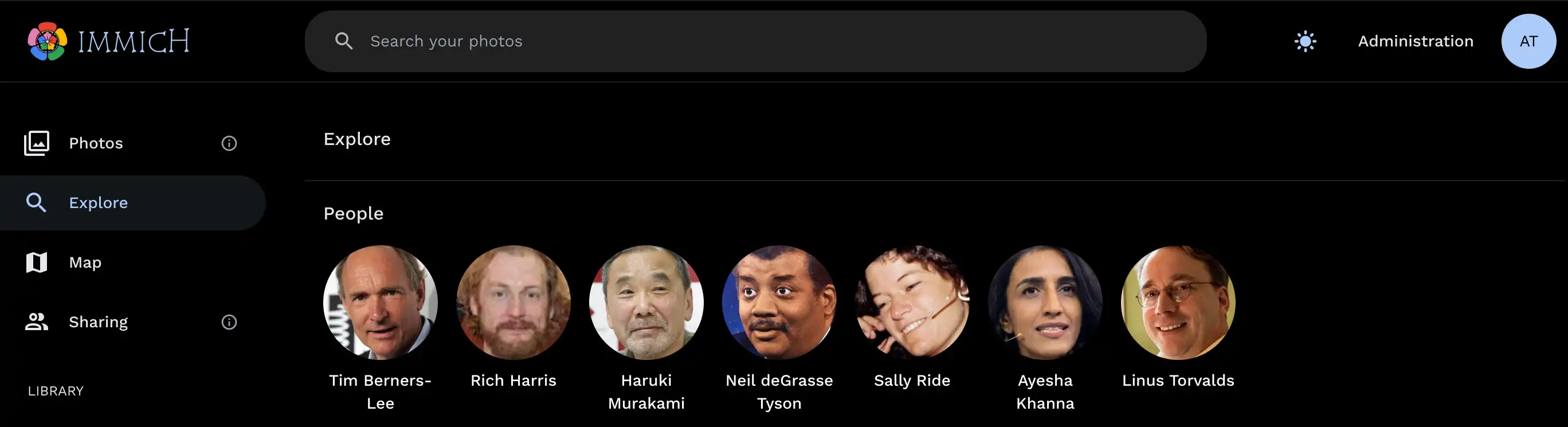 Immich recognizes faces in your photos and videos and groups them together into people. You can then assign names to these people and search for them.
