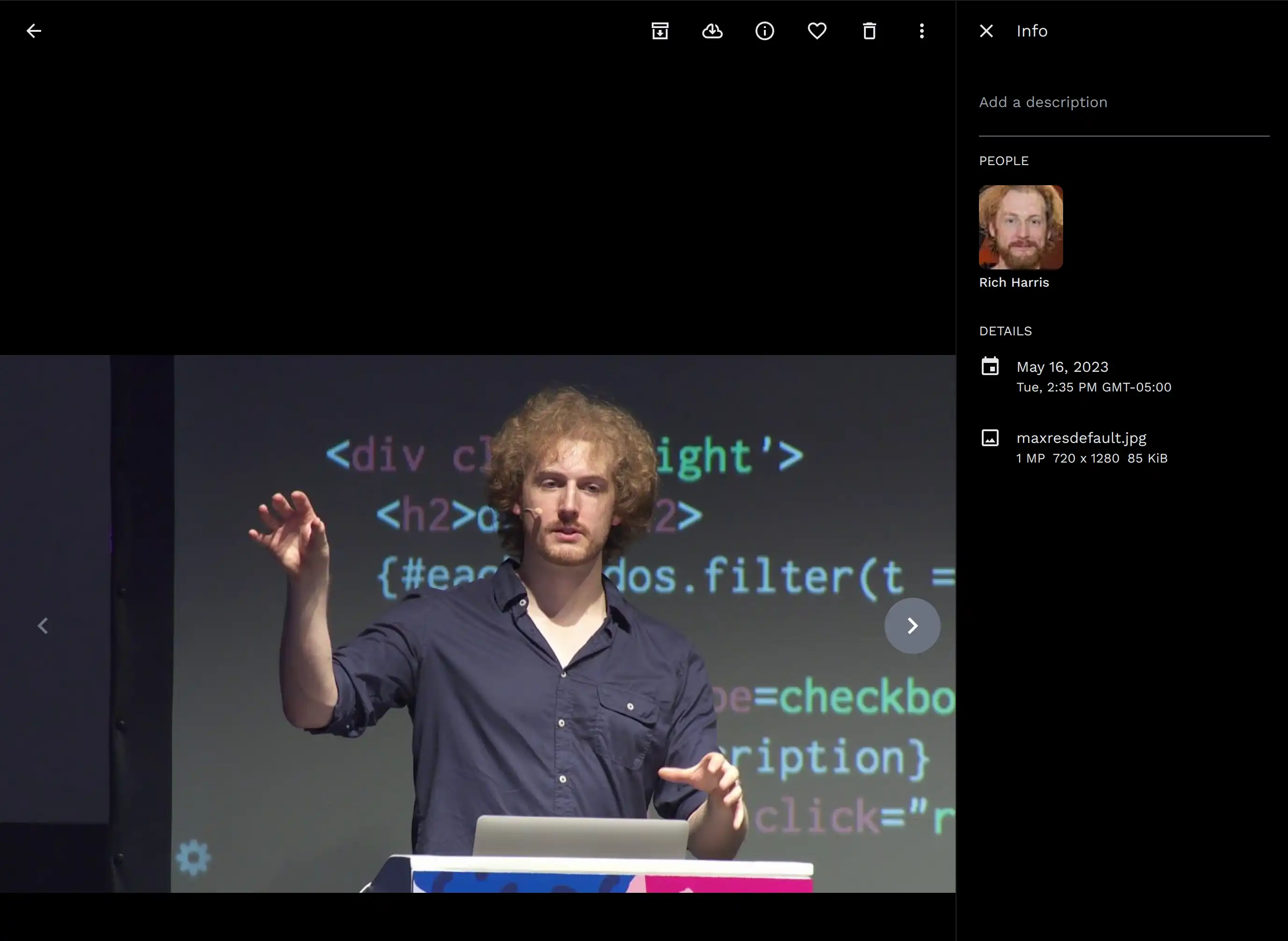 Upon clicking on a person, a list of assets that contain their face will be shown.